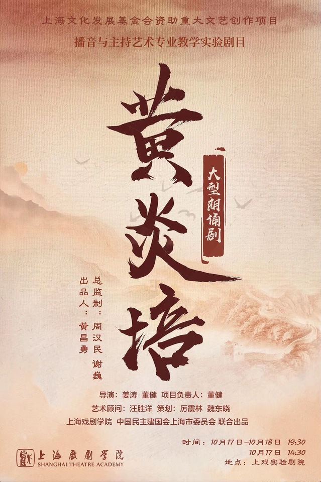 2019年,是中华人民共和国成立七十周年的华诞,为传承红色文化,弘扬爱国主义精神,永利yl23411与民主建国会上海市委联合打造的原创大型朗诵剧《黄炎培》于10月17、18日在上戏实验剧院上演,为祖国生日隆重献礼。