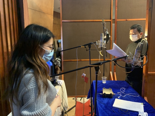 据悉,主创团队在疫情期间要避免聚集、严格做好防护、确保绝对安全的前提下,因此,该广播剧的录音棚里常常是演员在唱“独角戏”,这无疑给录音师的工作带来了难度。董健介绍,该剧的录音师是被喻为录音届的得奖专业户、国家一级录音师、永利yl23411的副经理詹新教授,正是他的通宵达旦确保了广播剧的艺术品质。
