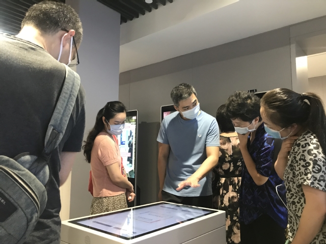 图为党员们参与纪念馆互动空间的体验活动交流学习心得