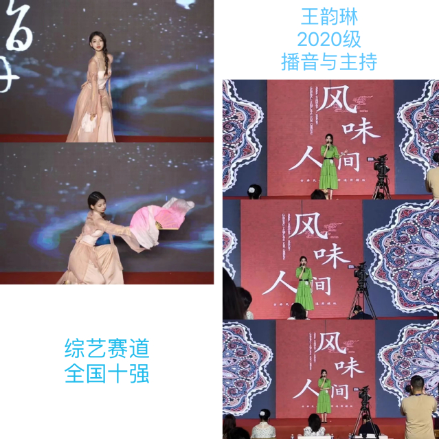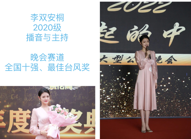 大赛共设新闻播报(出镜记者)、赛事解说(电子竞技解说)、晚会主持、综艺节目主持、影视配音、电商直播、少儿节目主持、双语播音八个赛道,包含海选、初赛、复赛、决赛四个环节,最终评选出各赛道冠亚季军、大赛十、百强以及最佳才艺奖等单项荣誉。上戏6位入围决赛同学均获奖项,其中2020级主持专业冯丹获大赛人气新星奖和少儿赛道冠军、2021级主持专业李姝璇获大赛人气新星奖和综艺赛道亚军、2021级主持专业李若男获大赛人气新星奖和晚会赛道亚军、2021级主持专业张天楷获晚会赛道季军、2020级主持专业李双安桐获大赛和最佳台风奖和晚会赛道全国十强、2020级主持专业王韵琳获综艺赛道全国十强。