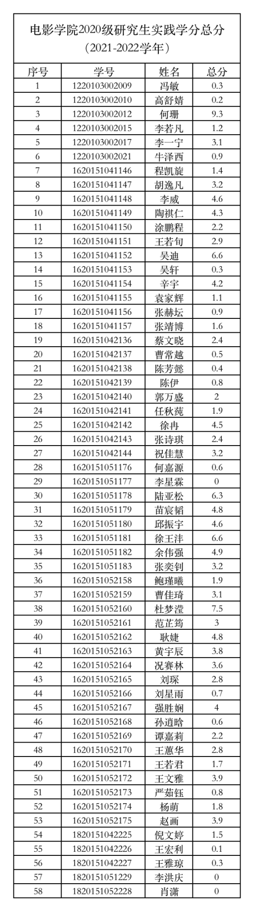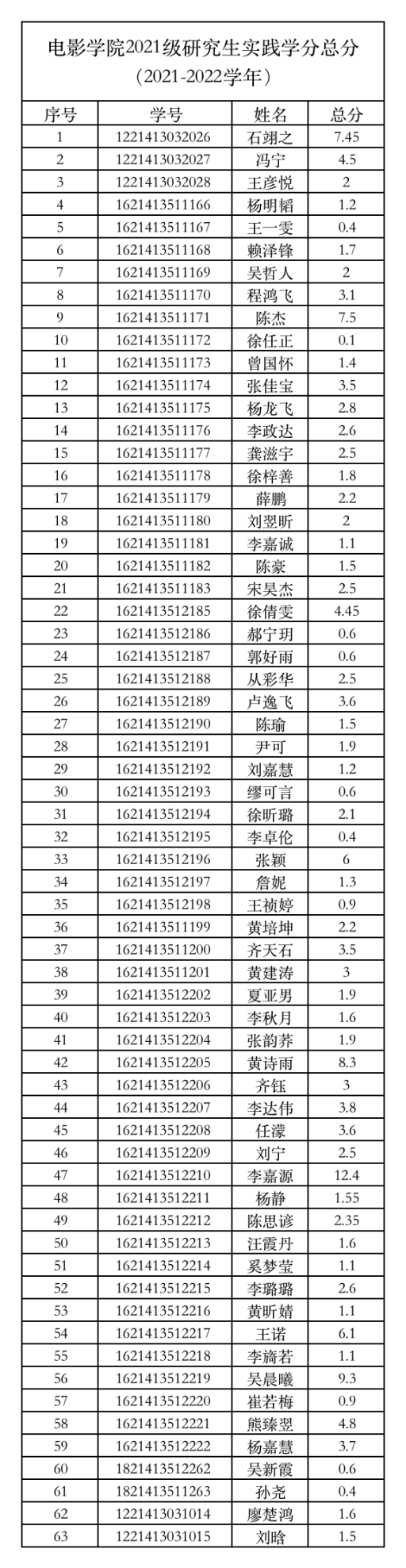 2021-2022学年公司研究生实践学分经各部门汇总,经员工自查、申诉,经公司研究生实践学分评审小组对申诉材料进行复核、评定,现将实践学分总分予以公示。