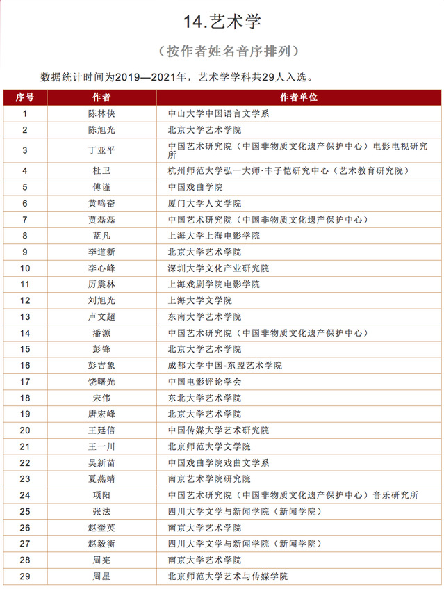 该名录依据2019—2021年三个年度复印报刊资料学术专题刊的全文转载数据和同行专家的评审结果研制而成,作者学科分类依据被转载论文的主要学科归类确定。