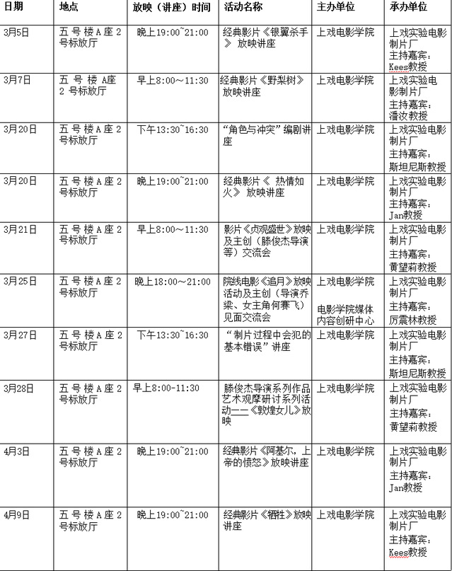 虽是一堂课,也欢迎校内其他院系师生和社会各界友好人士提前与承办单位预约,前来观影交流。