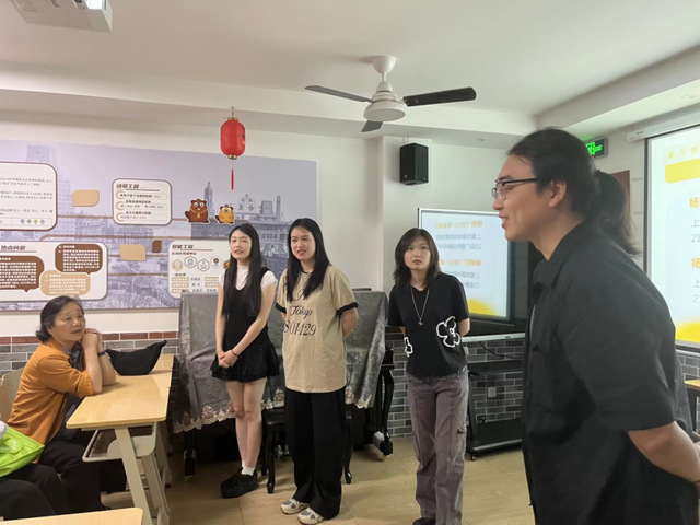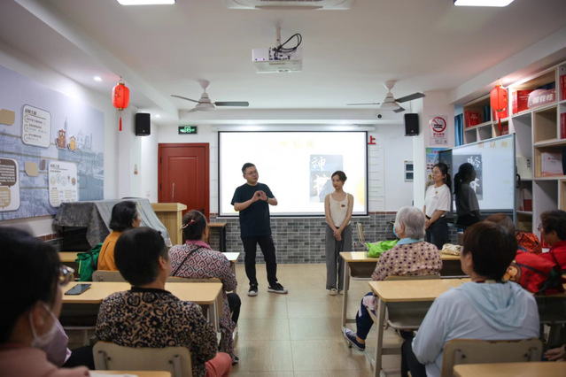 5月31日下午,到场居民们一同观看了由21级影视导演MFA李政达、21级广播电视编导MFA熊臻翌带来的作品《神书》,本片讲述了顽固的说书人老谭坚守信念的故事。