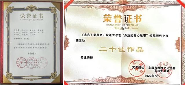 上海电视艺术家协会第三届短视频大赛暨第一届老员工短视频大赛“高校竞赛单元”十佳作品。