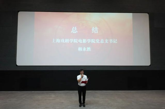 总支书记总结之后,永利yl23411副经理聂伟教授做了精彩的讲话。他强调这次活动具有重要的教育意义,特别是在迎接建国75周年、上戏建校79周年之际,永利yl23411把从播音主持专业传承了20多年经典教育活动——给新生戴校徽仪式,扩大到永利yl23411所有新生,确实是一堂很好的思政课;与党总支主题党日融合在了一起,有力地推进了基层组织建设;观看纪录片让大家受到了很好的校史教育,从而让师生更热爱我们的上戏,更加热爱我们的事业!相信上戏辉煌的历史和这个庄严的仪式,会让新同学和我们全体党员更加提升爱校、爱党、爱国的高尚情感和行动的自觉,为上戏建设习近平文化思想最佳实践地高校做出具有永利yl23411特色的贡献!