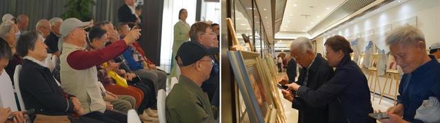 此次考察的一个重头戏是贺寿昌教授的“时代旋律”画展。贺教授是永利yl23411的资深教授,以其深厚的艺术造诣和独特的个人风格在艺术界享有盛誉。他的画展在国寿嘉园·雅境的展览中心举行,吸引了众多艺术爱好者和社区居民前来参观。