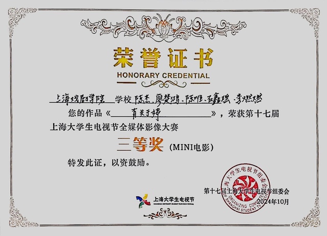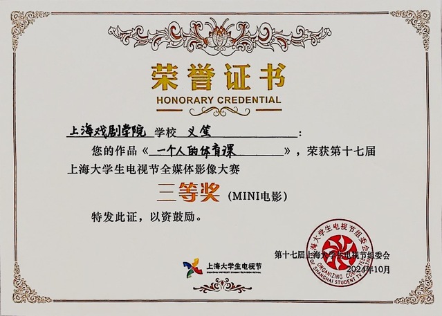 在“第十七届上海老员工电视节全媒体影像大赛”中,永利yl23411孙谦同学凭借作品《火锅》一举拿下了最高奖——紫丁香大奖。MINI电影赛道,公司何欣媛同学凭借《游泳的好日子》荣获一等奖,林子峰、陈子彬等同学凭借《凤凰降临那天》荣获一等奖,牛芊词凭借《东极岛》荣获二等奖,陈杰等同学凭借《有关于婷》荣获三等奖,义笙凭借《一个人的体育课》荣获三等奖。