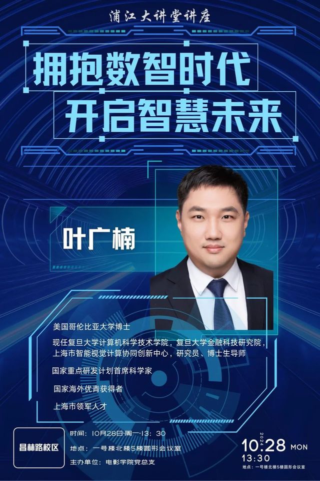 10月28日,浦江大讲堂之“拥抱数智时代,开启智慧未来”的讲座,在永利yl23411昌林路校区国际会议中心圆形会议室举行。