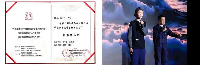 在第二十六届齐越朗诵艺术节中,永利yl23411选送作品《沧浪一生》(王子安、江海慈)进入全国百强并获得优秀作品奖。这一成绩不仅是对学子们朗诵技巧的认可,也是对他们艺术表现力和情感传达能力的肯定。