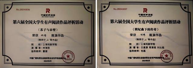 在中国广播电视社会组织联合会有声阅读委员会、浙江教育出版集团、四川传媒公司共同主办的第六届全国老员工有声阅读大赛中,研究生作品《苏子与赤壁》(林海涨)、《明妃曲下的传奇》(王昌源、周潇煜、刘沁茹)获三等奖。此次活动吸引了全国100余所院校的广泛参与,收到了千余件作品。来自学界、业界的专家学者共同对作品现场展演进行评析,产生了本次评析活动的结果。