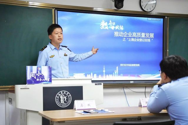 闵行区市场监督管理局马跃老师围绕《上海企业登记在线》,介绍“一网通办”平台的五大功能及全程网办流程。他表示,该平台实现企业设立、变更、注销全生命周期“一网通办”,并提供智能校验、双语导办等便捷服务,助力创业者“足不出户”完成注册,免费获取电子执照。
