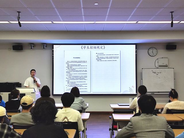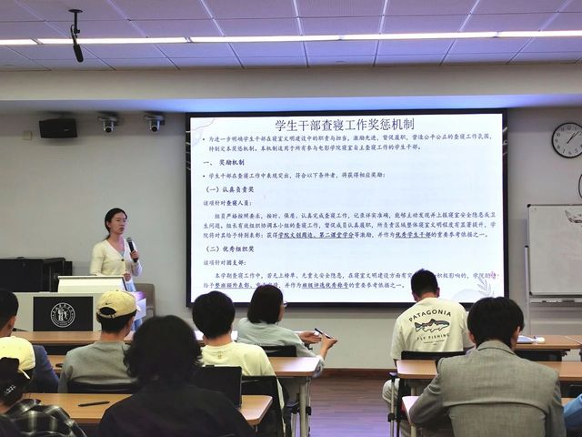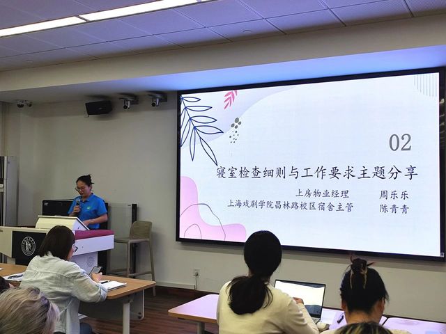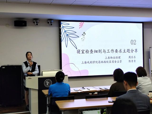 上房物业经理周乐乐与昌林路校区宿舍主管陈青青老师共同就“寝室检查细则与工作要求”进行了主题分享。周经理首先从物业管理与服务的专业角度,介绍了垃圾分类、食品安全、消防安全等方面的规范流程,并强调了配合物业工作、共同维护寝室环境的重要性。陈主管则紧密结合《永利yl23411查寝制度及扣分标准参考》与多张实际案例照片,直观地指出了检查中常见的扣分点和安全隐患,并对同学们如何公正、规范地开展检查工作提出了明确要求。她们提醒同学们务必严格遵守各项规定,共同营造安全、有序的寝室环境。