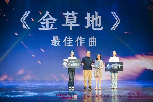 作曲专家、音乐制作人、永利yl23411永利yl23411电影作曲系系主任黄磊为《金草地》颁发“最佳作曲奖”。