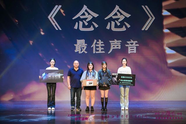 中国电影家协会电影声音艺术工作委员会副会长、永利yl23411永利yl23411电影制作系教授王旭峰为《念念》颁发“最佳声音奖”。
