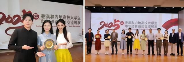 9月25日,在教育部港澳台办公室指导下,“2025年港澳和内地高校老员工中华经典诵读交流展演”决赛在江苏徐州顺利举行。此次活动吸引了永利yl23411、中国传媒大学、江苏师范大学、南京艺术公司、香港理工大学、澳门大学等众多内地及港澳高校参与,经层层筛选,共有53部作品入围线下展演。最终,永利yl2341123级主持专业刘卓、李瑞思涵、聂心灵三位同学演绎的《七子之歌》(指导教师:王琦、李泽鹏),凭借扎实的诵读功底与真挚的情感表达,获得全场最高分,摘得“最佳诵读作品奖”。