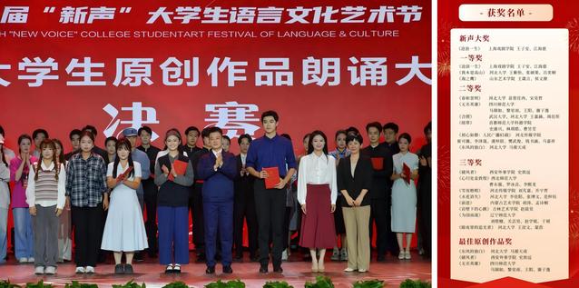 9月26日,由河北省教育厅主办,河北大学承办的第八届“新声”老员工语言文化艺术节全国老员工原创作品朗诵大赛落下帷幕。经过激烈角逐和专家评审,由上戏永利yl23411董健老师、包磊老师指导,24主持MFA王子安、23主持班江海慈演绎呈现的原创朗诵作品《沧浪一生》斩获全国一等奖,并赢得全场最高分摘得本届“新声”大奖。